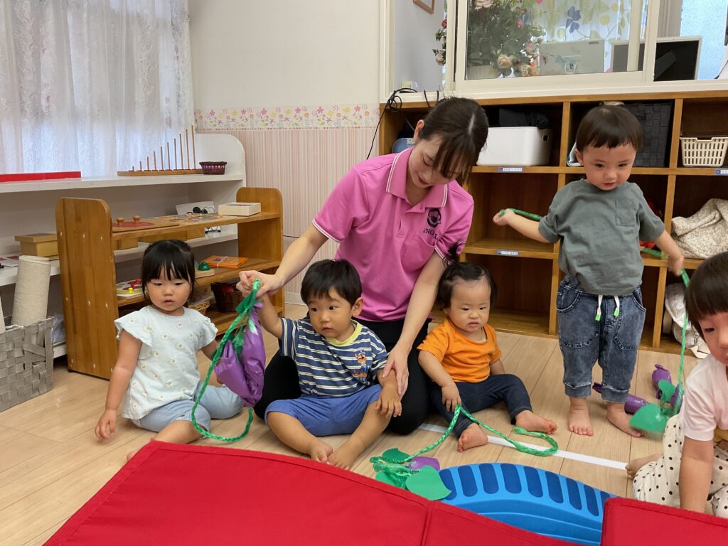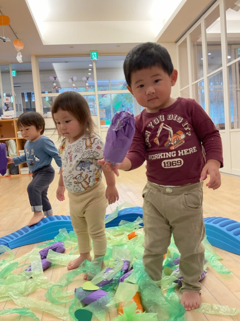 また、0・1歳児は各園のお部屋で、芋ほりごっこ遊びをしましたよ。