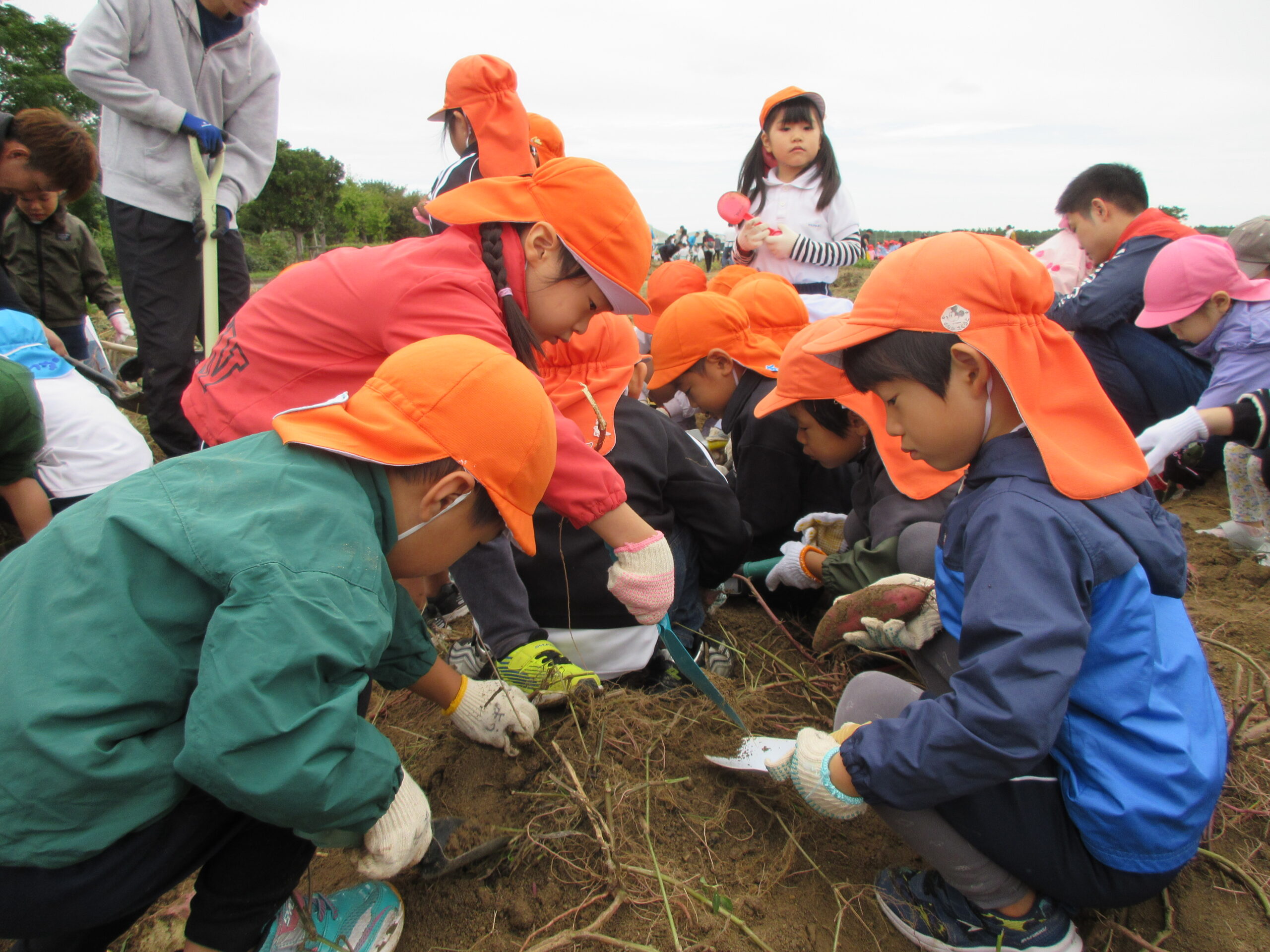 「明日は芋ほり!」「いっぱい取りたい」と前日から遠足を楽しみにしていた子ども達。