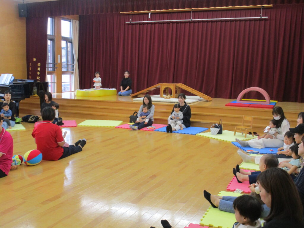 まずは、ひざのせ遊び「うまはとしとし」「おすわりやす」など定番のわらべ歌あそびから、ダイナミックなダンスまで☆子どもたちが大好きな「高い高~い」を何度も行い、最後はぎゅ~💕