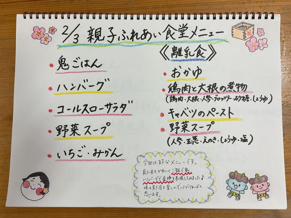 2月3日の親子ふれあい食堂は、節分の日という事で、