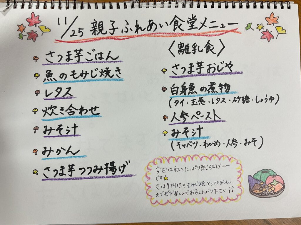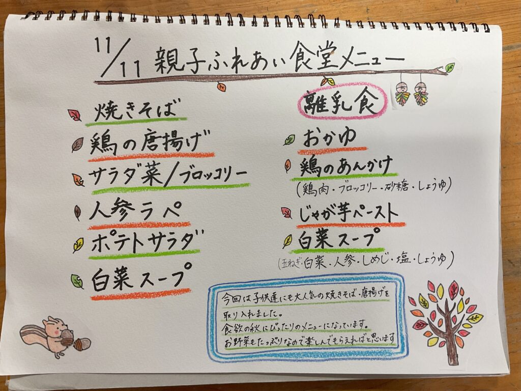 11月11日の親子ふれあい食堂は、園の給食でも子どもたちに人気のある