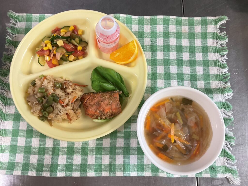 9月のお誕生会は、福岡の郷土料理「かしわごはん」「さけのごま焼き」などの和食メニューでした。子どもたちからも、「ごはん美味しい」「お魚すき~♡」という声が聞かれました(*^-^*)